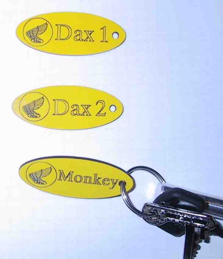 Schlüsselanhänger erhaben graviert und vernickelt.