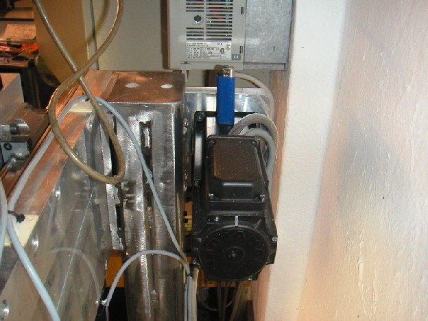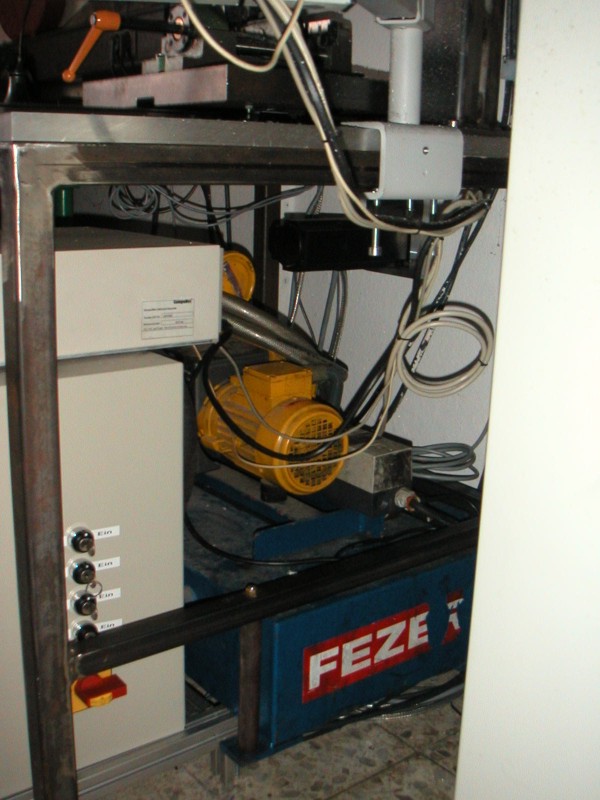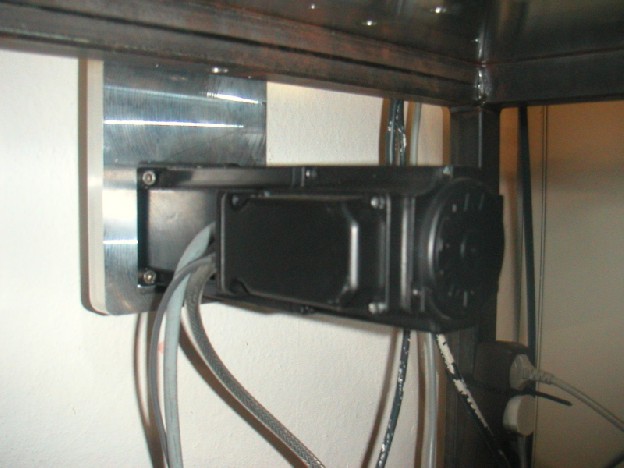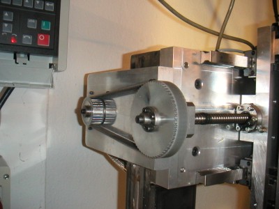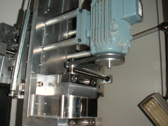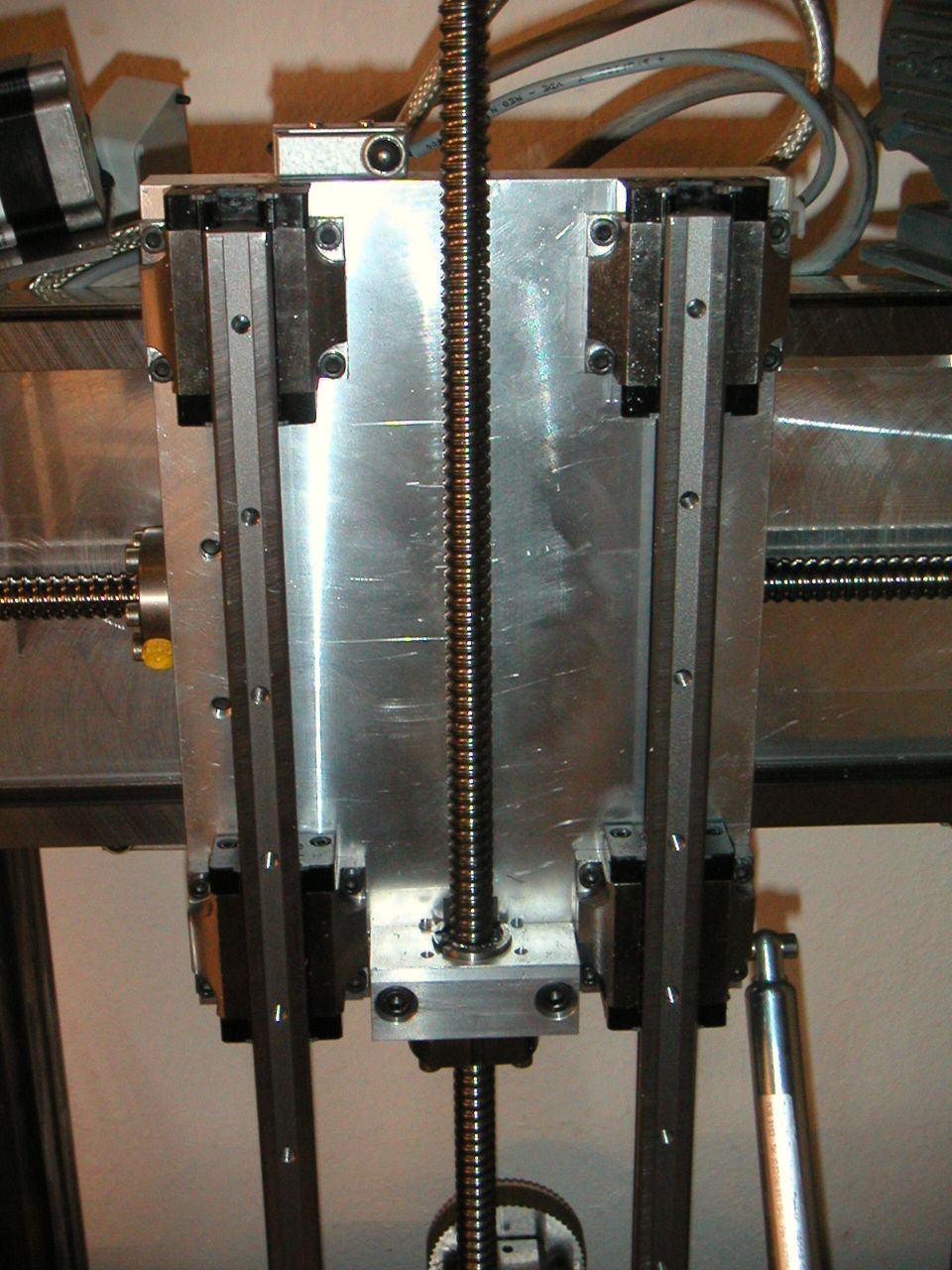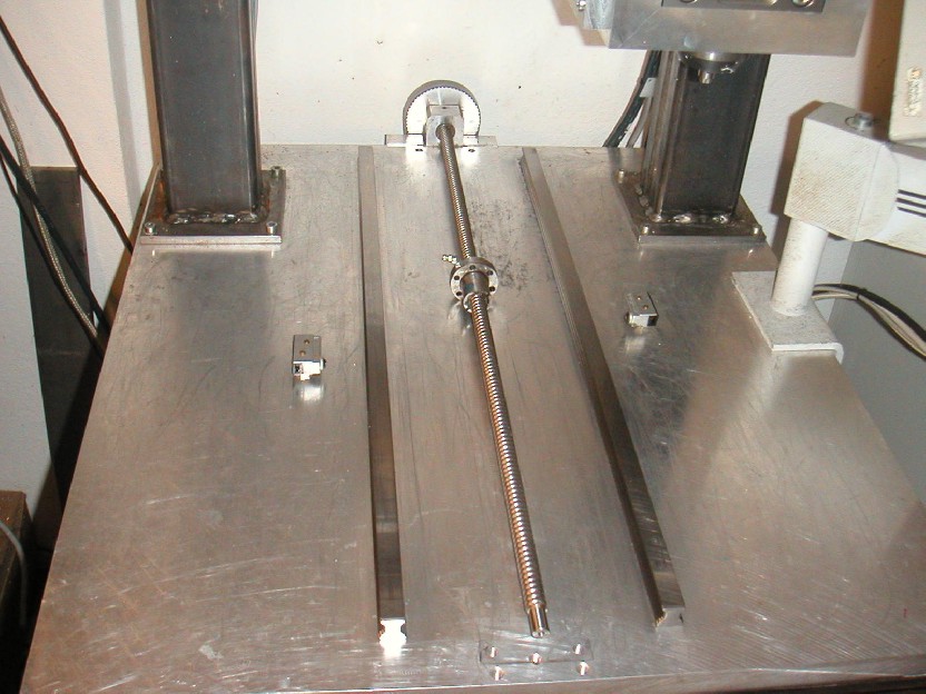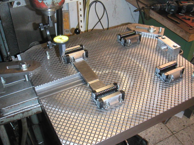 Maschinentisch Unterseite beim Ausrichten der Linearführungen Rechts ist die Aufnahme der Mutter zu sehen,