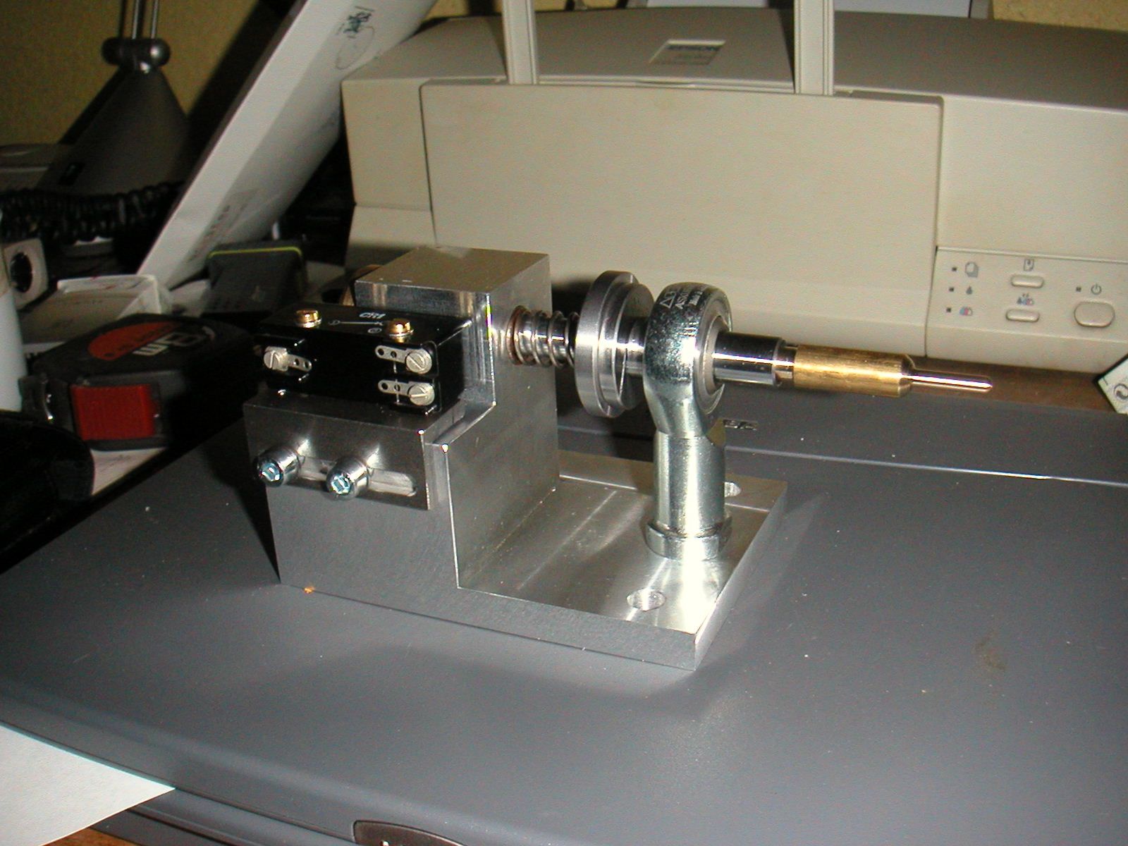 Die Tastkopfaufnahme(Drehteil rechts) kann sich in dem Gelenkstangenkopf in Längsrichtung bewegen. Die Bewegung geht direkt auf die Schaltnockenachse(Drehteil links) und löst einen Kontakt über die